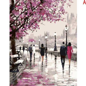 Frameless Cherry Blossoms Road DIY Oil Painting by Numbers Kits Wall Art Picture Home Decor Gifts