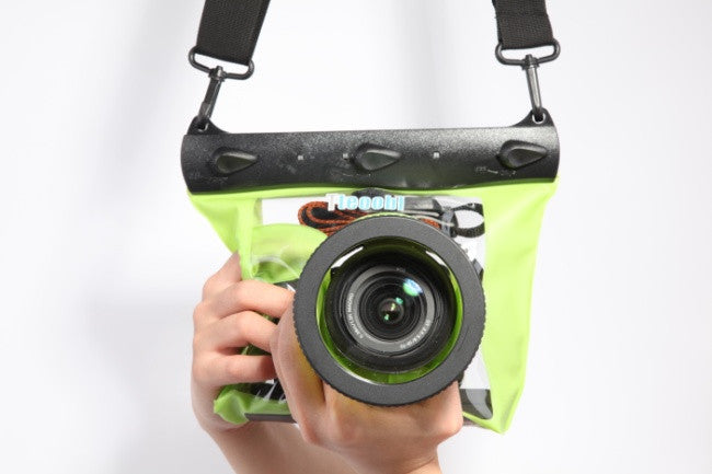 Universal waterproof housing for most DSLR SLR lens cameras. (Note: Lens alone should not be longer than 100mm.)